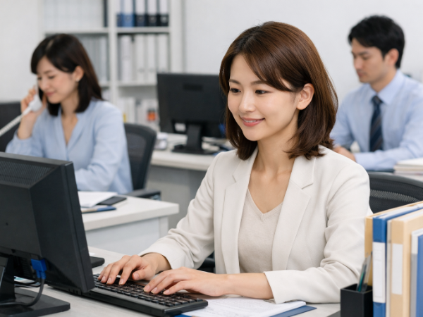 営業サポート業務と家賃管理部門の事務業務を担当し、会社全体の業務が円滑に進むよう支える役割です。業務内容は複数ありますが、適性に応じた業務から担当します。社内システムを活用した事務作業や、書類作成、数値管理など、正確性が求められる業務が中心です。